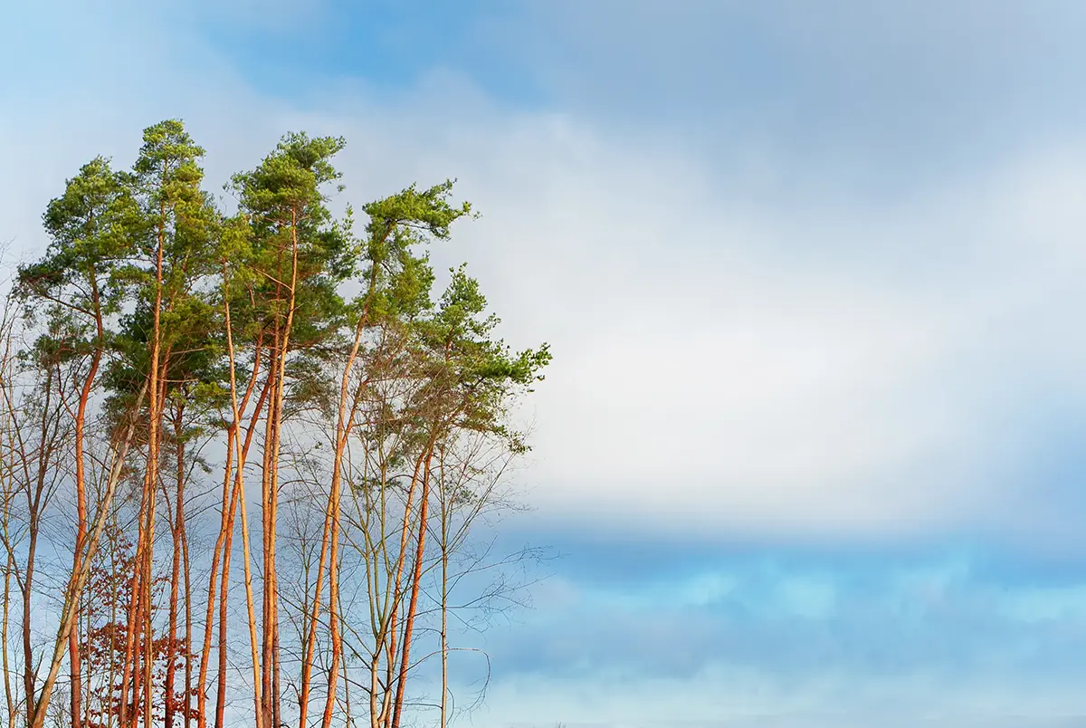 Wiosenne niebo i sosny – darmowe tło do pobrania