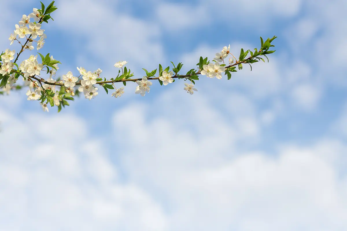 Wiosenna lekkość - tło z kwitnącą gałązką i błękitnym niebem